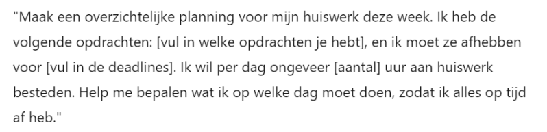 Voorbeeld 2: Laat leerlingen ChatGPT gebruiken om hun huiswerk te plannen